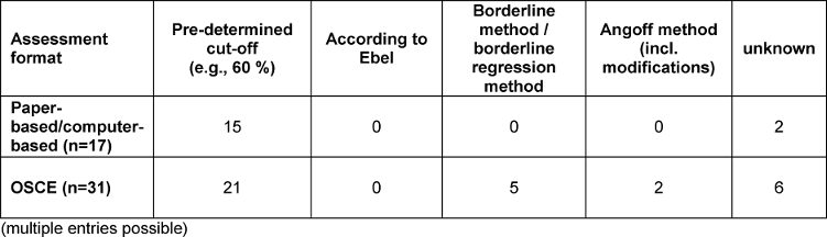Table 10: Methods employed for establishing a cut-off score [39] for the summative assessments (multiple entries possible)