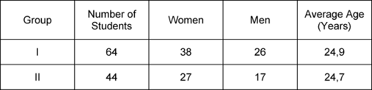 The present study relates to a period of two semesters (summer semester 2010 = Group I, summer semester 2012 = Group II). The composition of the study population is given in Table 1 [Tab. 1]. The inclusion criteria were: