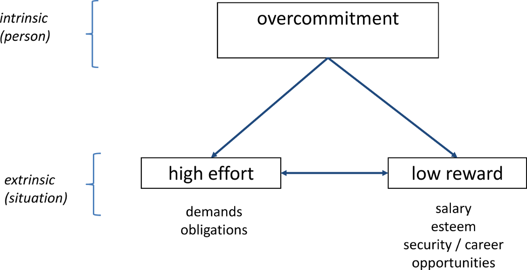 An English study on university instructors confirmed these relations [8]. Overcommitment was a strong predictor for anxiety and depression, while reward was associated with a high level of work-satisfaction. Those findings were consistent with the results of an earlier study by Kinman et al. [11]. These authors also showed that an imbalance between effort and reward led to a bad work/life balance, especially for employees who reported increased commitment at work.