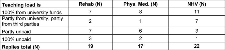 Teaching of QB12 was an add-on, mainly unpaid or financed by external funding. NHV lecturers most often mentioned full financing of their teaching (see table 1 [Tab. 1]).