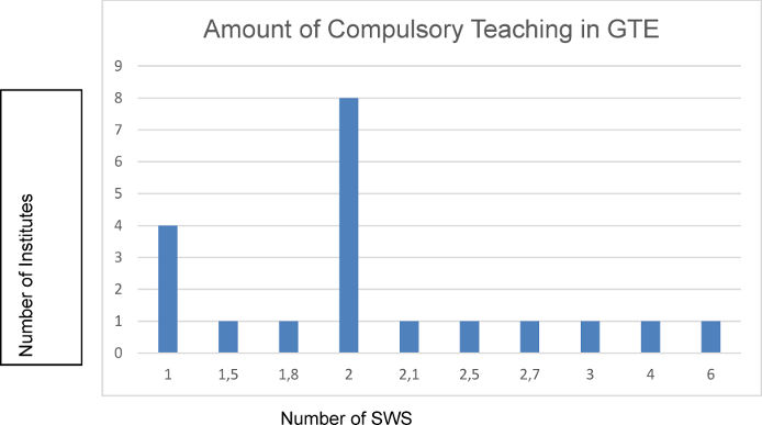 In the concluding questions of the survey we asked about the structural framework for GTE teaching at the respective institutions. We also asked about possible difficulties associated with teaching GTE. According to free-text comments most respondents mentioned the lack of staff positions (ten citations). Further problems cited were an insufficient number of teaching hours for teaching GTE content (nine citations) and too low an estimation of GTE on side of the faculties (seven citations) and students (six citations). Three respondents formulated as basic requirement the foundation of an institute for teaching of GTE.