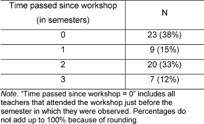 Table 1: Overview of the time passed since teachers’ participation in workshop (N=60, [one missing value]).