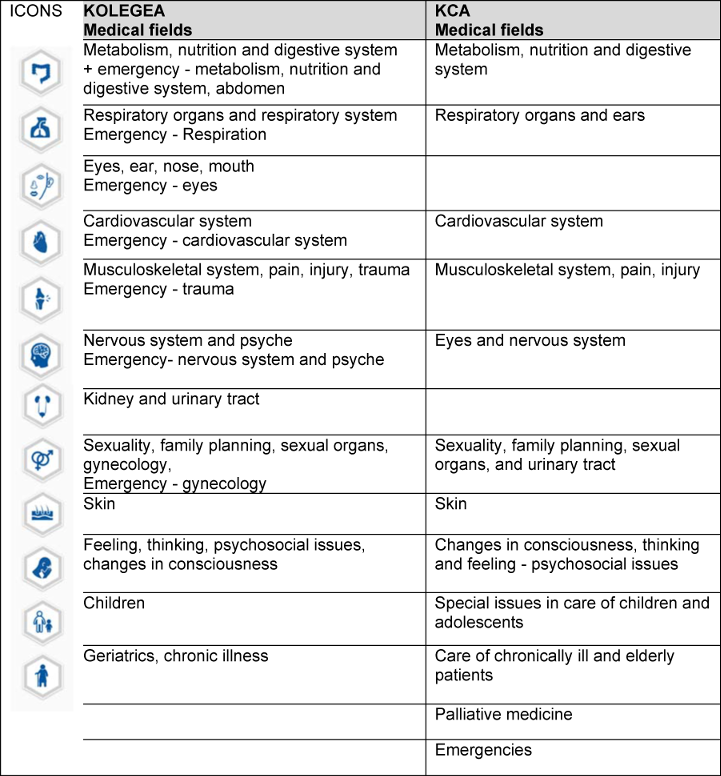 Table 1 [Tab. 1] shows a side-by-side comparison of the medical areas as defined by the KCA and those previously included in the KOLEGEA platform.