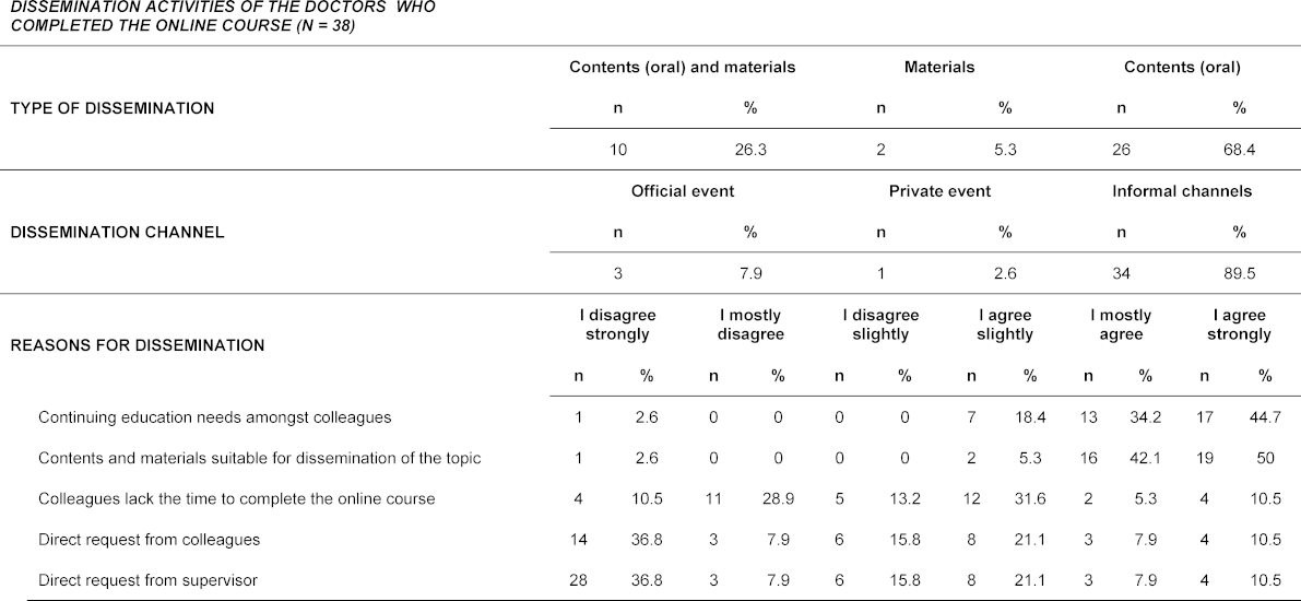 Table 1: Dissemination activities of the doctors who completed the online course