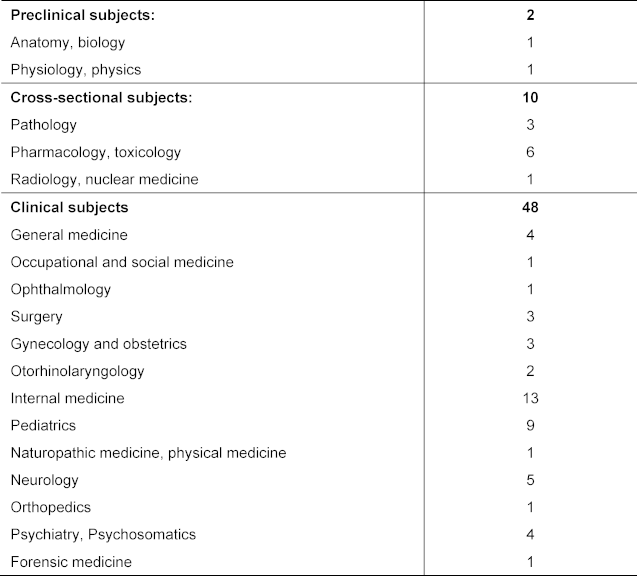While the comparison with data from the Federal Register of Physicians [30] shows a similar distribution pattern nationwide of general practitioners in terms of gender, age and specialist training, the recruitment of study participants to quality circles and congresses could have led to a selection bias, since it can be assumed that especially motivated, inquisitive general practitioners attend congresses and quality circles. Although all primary care physicians are required to undergo training and to collect CME points, a distortion of the study results cannot be ruled out. A randomized random sample was not possible in this study design. Possible effects due to the selection of participants are therefore not excluded. The motivation factor gains additional weight because the participants had to invest a relatively long time in answering the questionnaire with a scope of seven pages and the 60 test questions. Participation in the study was voluntary, reward or sanction was not expected in any case. An incentive may have been the offer of feedback concerning one’s individual knowledge status. But this is not comparable to a summative assessment for an academic and/or professional qualification, so that the lower motivation of the participants could have affected the results of the study. Ramsey found a similar limitation when comparing the results of voluntary study participants with the results of those physicians who had to undergo recertification and had a marked different degree of success [6]. A study focusing on low-stake tests, i. e. non-impact testing, may support the assumption that the external motivation or demotivation factors of the subjects could have played a role in the present study [31].