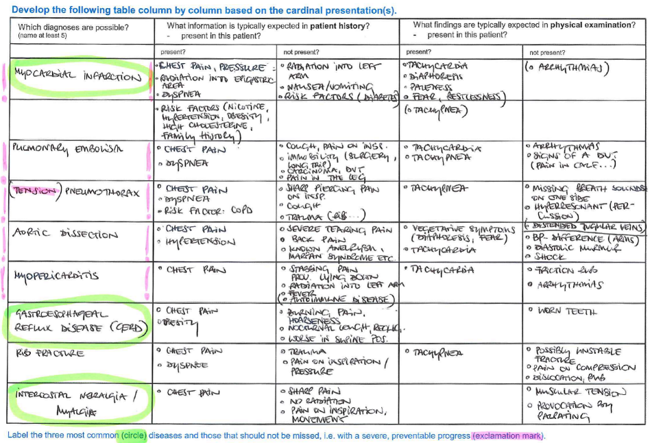Figure 1: Clinical reasoning – table for the generation of a working and differential diagnoses