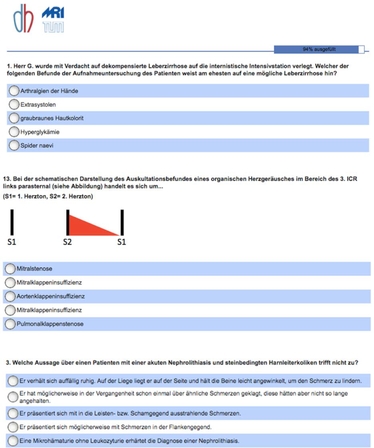 New digital learning formats can represent yet another way to improve these core bedside competencies. We have already been able to demonstrate in a study that interactive e-learning cases resulted in improved self-assessments of students regarding history-taking and examination techniques and in diagnostic and therapeutic thinking [13].