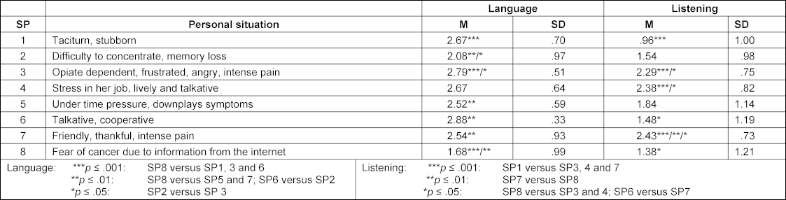 Table 3: Mean differences between both ComCare ratings for the items “Language” and “Listening” by simulated patients (SP)