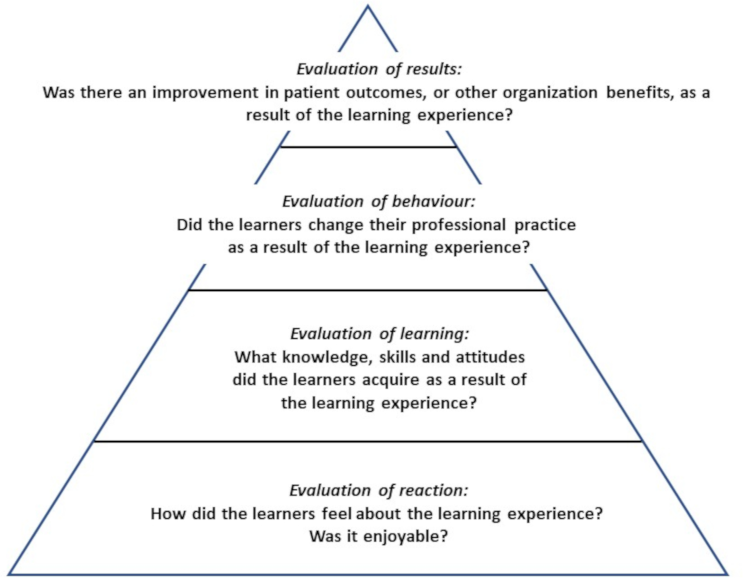 In addition to these questions, we evaluated the effectiveness of interventions described in the included studies using the Kirkpatrick Hierarchy for Assessing Educational Outcomes [16], [17].