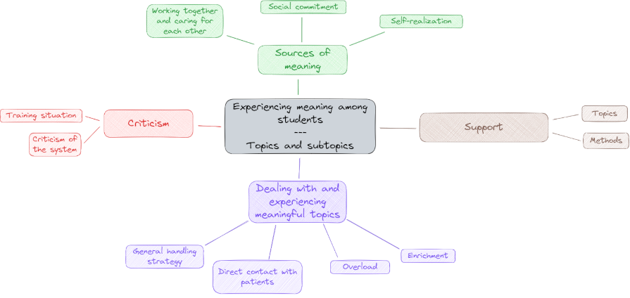There was a high level of agreement between students’ sources of meaning and the motives for studying medicine found in the literature. The greatest agreement was for caring motives, followed by aspects of self-realization and self-transcendence [55], [56]. Whether the above-mentioned peculiarities are specific to medical students remains open. Further work will be necessary to examine the specific sources of meaning and their proximity to motivations for specific studies.