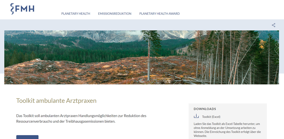 Figure 1: Website of the Swiss Medical Association (FMH) with the Planetary Health Toolkit: [https://toolkit.fmh.ch/] (retrieved 8th January 2025)