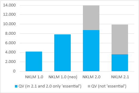 The definition of target chapters and the resulting narrower definition of the content descriptor justifications has resulted in a further refinement of the CR structure, which has contributed to a reduction in the total number of CR. This can be seen from the fact that the total number of CR (even without separating them into essential and non-essential) decreased from NKLM 2.0 to NKLM 2.1.