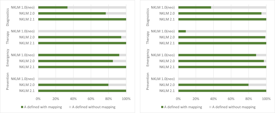 When creating NKLM 1.0 (neo), differences in understanding of terms between individuals may have influenced the mapping results. However, the rules developed on the basis of the pilot study should have contributed to a certain degree of objectivity.