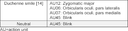 [15] Girard JM, Cohn JF, Yin L, Morency LP. Reconsidering the duchenne smile: Formalizing and testing hypotheses about eye constriction and positive emotion. Affect Sci. 2021;2(1):32-47. DOI: 10.1007/s42761-020-00030-w
