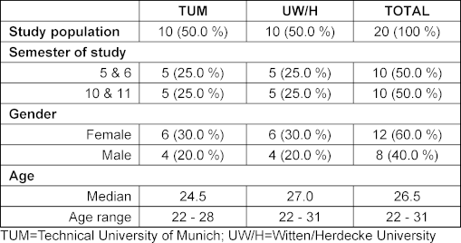 A total of 20 students participated in the study. Personal characteristics are described in table 1 [Tab. 1].