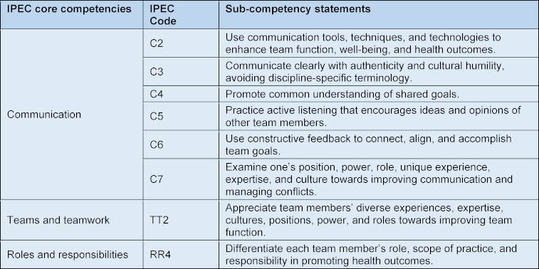 Table 1: Sub-competency statements of IPEC core competencies (IP education collaborative)