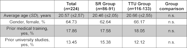 All TTU groups were taught by one lecturer (S.J.K.), the SR groups by two other lecturers from the institute. However, all lecturers involved had comparable experience in teaching the seminar.