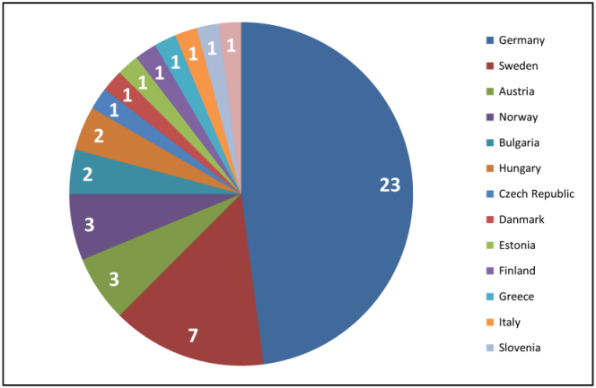 Figure 1: Number of participating analytical laboratories from different countries. In total, 48 questionnaires were included in the analysis.