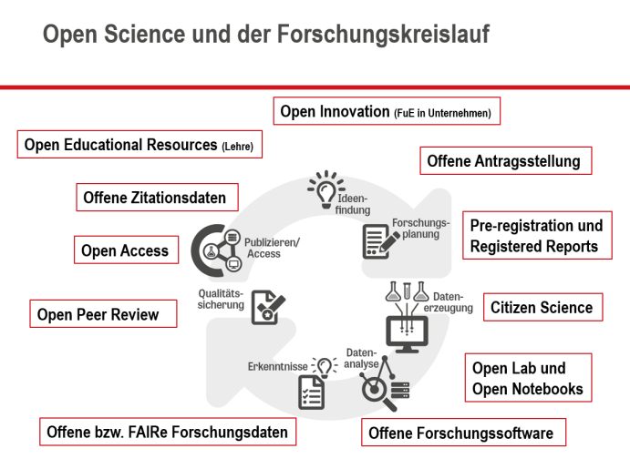 Hervorgehoben werden sollen insbesondere zwei Aspekte: erstens, dass mit der Öffnung der komplette Forschungskreislauf gemeint ist und zweitens, dass neben der Wissenschaft auch Gesellschaft und Wirtschaft von dieser Öffnung profitieren, wenn Forschungsergebnisse frei und offen zugänglich sind.