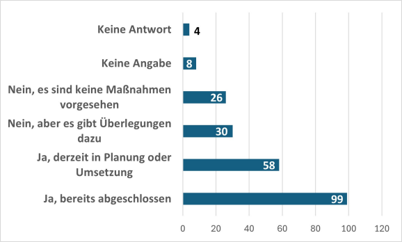 Abbildung 1: Hat Ihre Bibliothek bzw. Teilbibliothek in den letzten 5 Jahren Umbaumaßnahmen zur Verbesserung der Lernumgebung durchgeführt oder plant sie solche in den kommenden Jahren? (Stichprobengröße (N)=221 +4x keine Antwort)