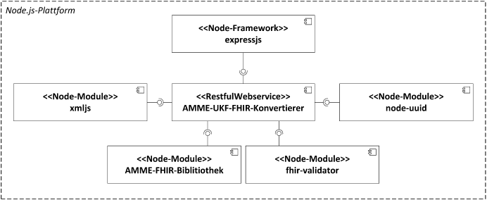 Abbildung 5: Aufbau des AMME-UKF-FHIR-Konvertierers (Node-Module und -Frameworks)