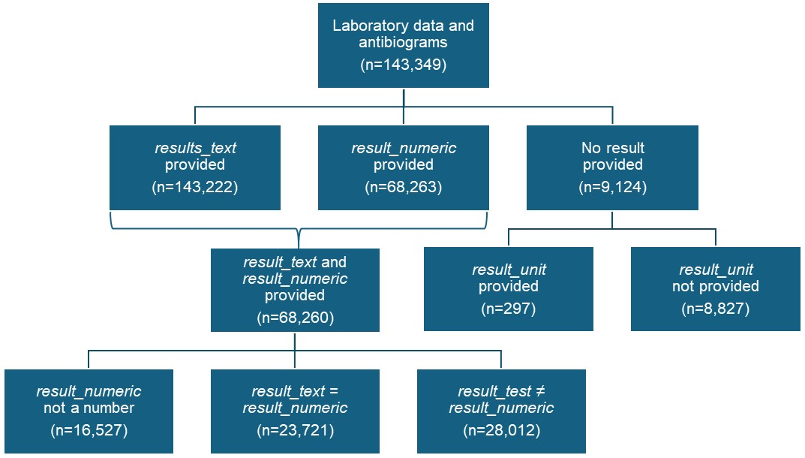 Figure 3: Distribution of result_numeric, result_text, result_unit