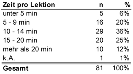 Tabelle 3: Zeitaufwand pro MindMailer-Lektion