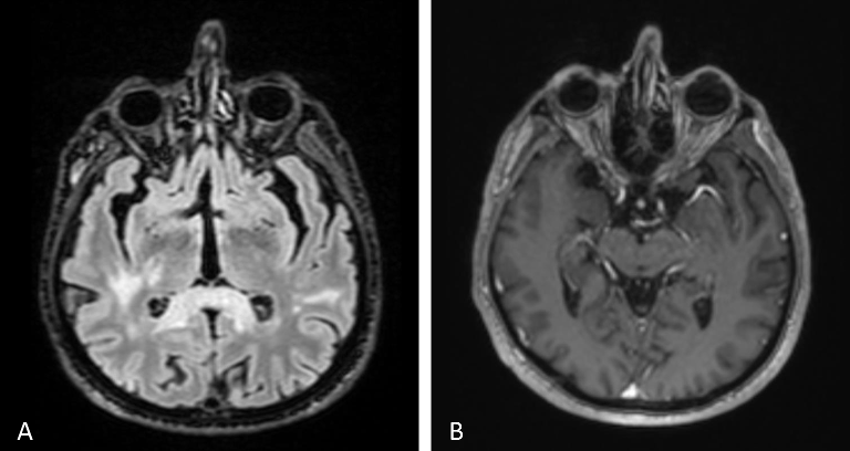 Figure 1: Contrast and non-contrast cranial MRI sections from systemic investigation.