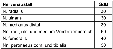 Tabelle 4: Schätzung des Grades der Behinderung (GdB) in Analogie zu peripheren Nervenschädigungen [44]