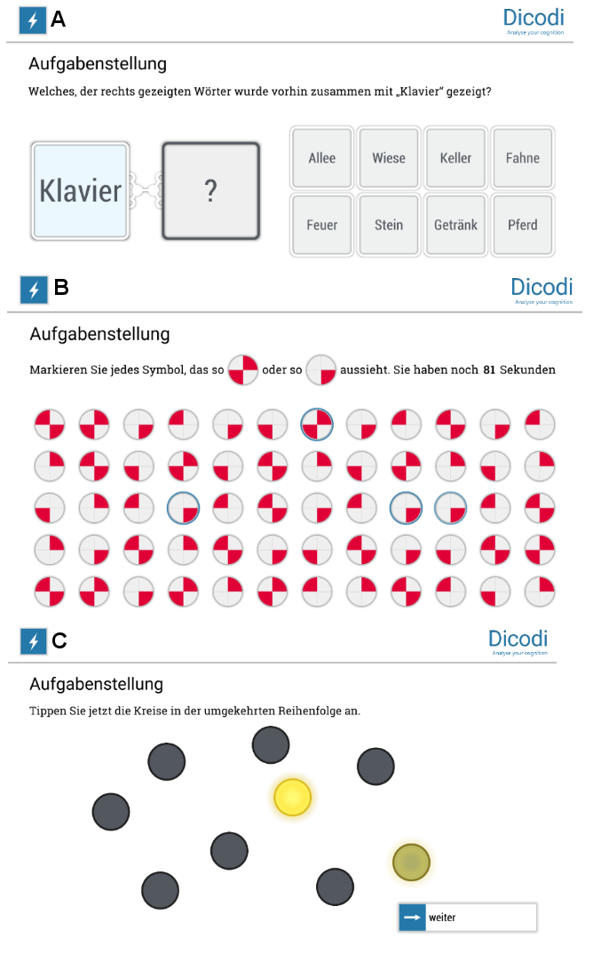 In addition to the DiCoDi®, a comprehensive neuropsychological test battery was administered to validate the DiCoDi® subtests.