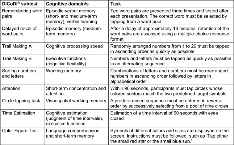 Table 1: Overview of DiCoDi® subtests and their cognitive domains