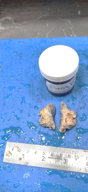 Laboratory investigations showed uncontrolled diabetes with HbA1c was 11.67 despite the above-mentioned medication. An intradermal tuberculin test was done, which showed 13-mm induration. A cartridge-based nucleic acid amplification test (CB-NAAT/GeneXpert) was negative for tuberculosis. Fungal culturing was not performed, as clinically it was suspected as tuberculosis. Surgical excision was done. Gross tissue was grey-yellow, measuring 3 x 2 x 2 cm (Figure 2 [Fig. 2]).