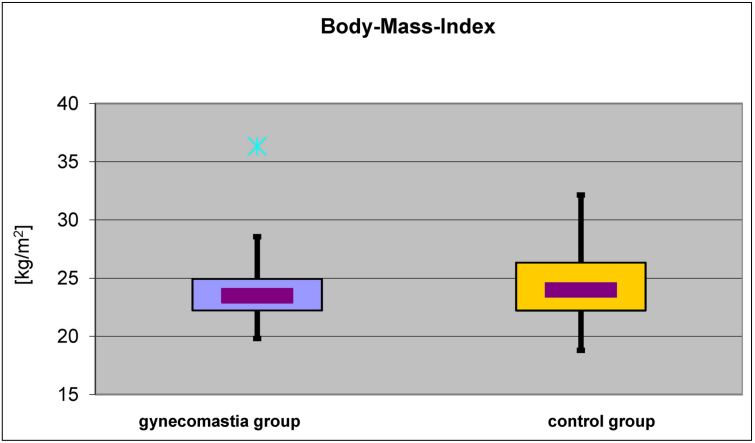 Laboratory results were compared with reference data obtained from the German Society of Clinical Chemistry and Laboratory Medicine. The control group consisted of healthy males between 20 and 24 years of age. The gynecomastia group and the control group were matched for median age.